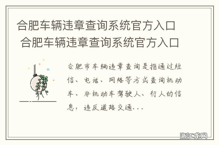 隨著交通管理的日益嚴格,了解車輛違章情況已成為車主們的日常必修課,作為安徽省的省會城市,合肥市交通管理系統(tǒng)的完善與更新速度也在不斷提升,本指南旨在幫助初學者及進階用戶輕松完成合肥市最新車輛違章查詢,確保您的行車安全。