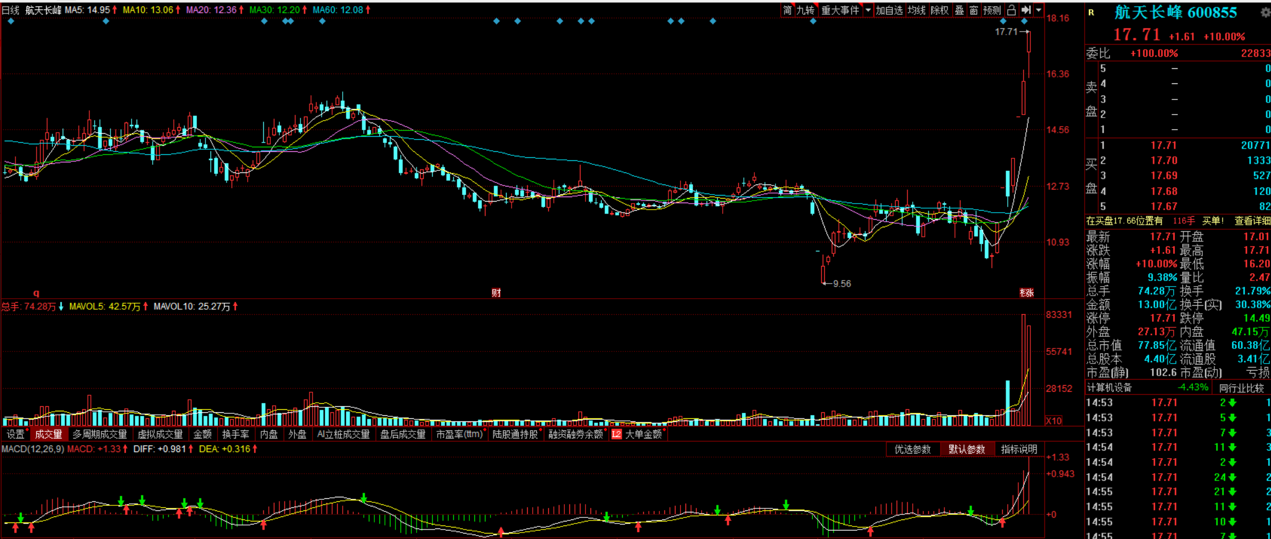 1、股票走勢(shì):航天長(zhǎng)峰股票表現(xiàn)強(qiáng)勁,股價(jià)穩(wěn)步上升,展現(xiàn)出良好的投資前景。
